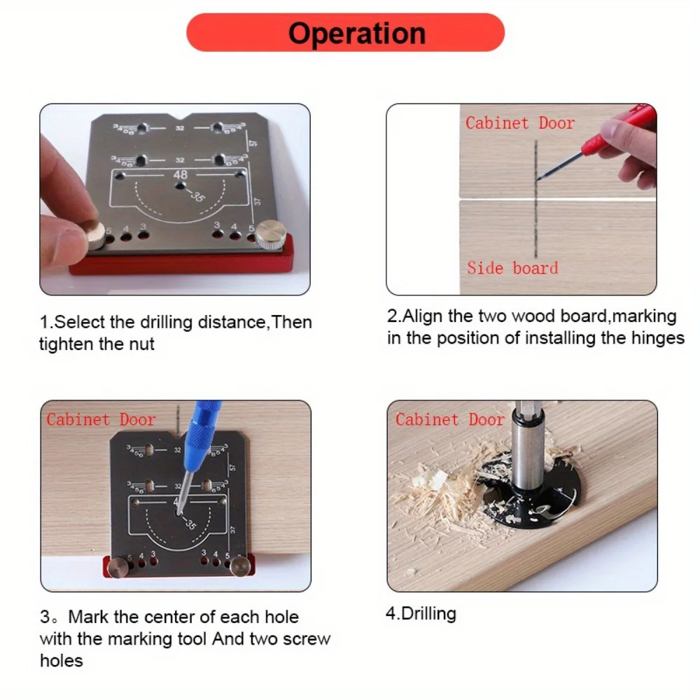 Premium Material: Made of high-quality aluminum alloy, this hinge drill guide is strong, sturdy, and resistant to rust and wear, ensuring long-lasting durability.