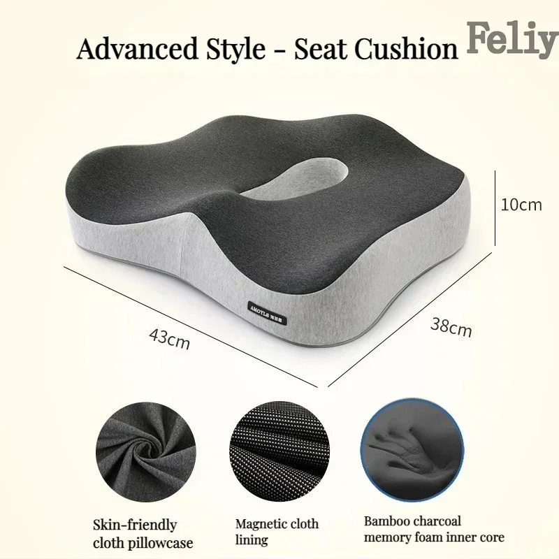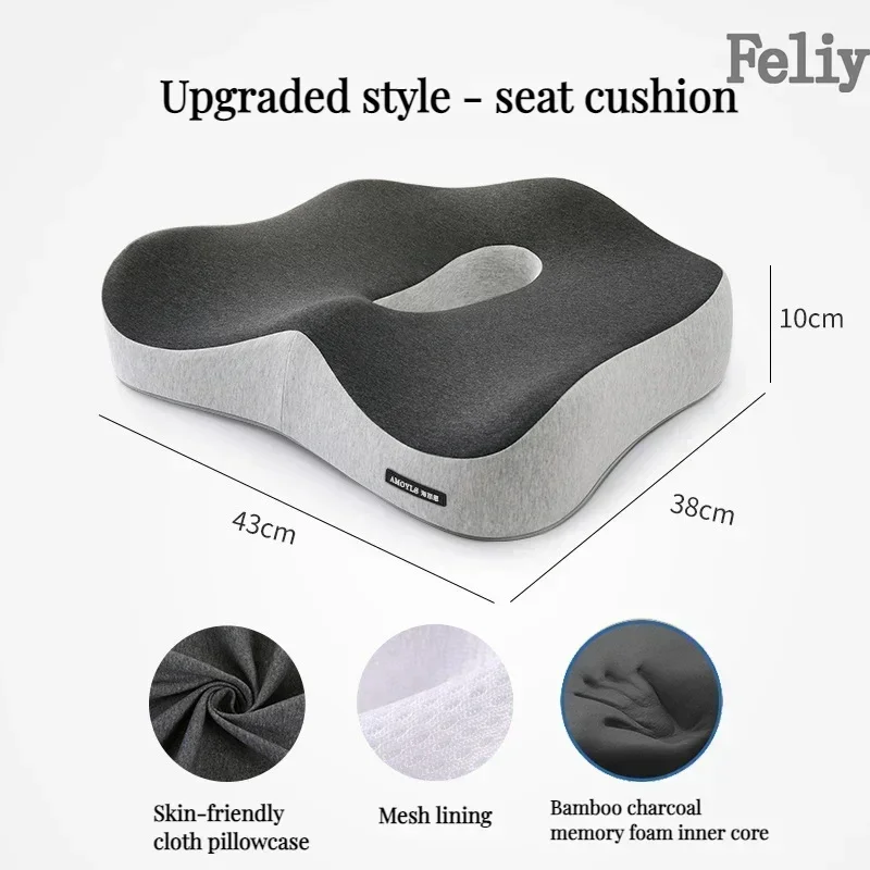 Memory Foam Seat Cushion Office Chair Cushion Car Seat Support Waist Pillow Massage Buttocks Pad Pain Relief Orthopedic Pillow