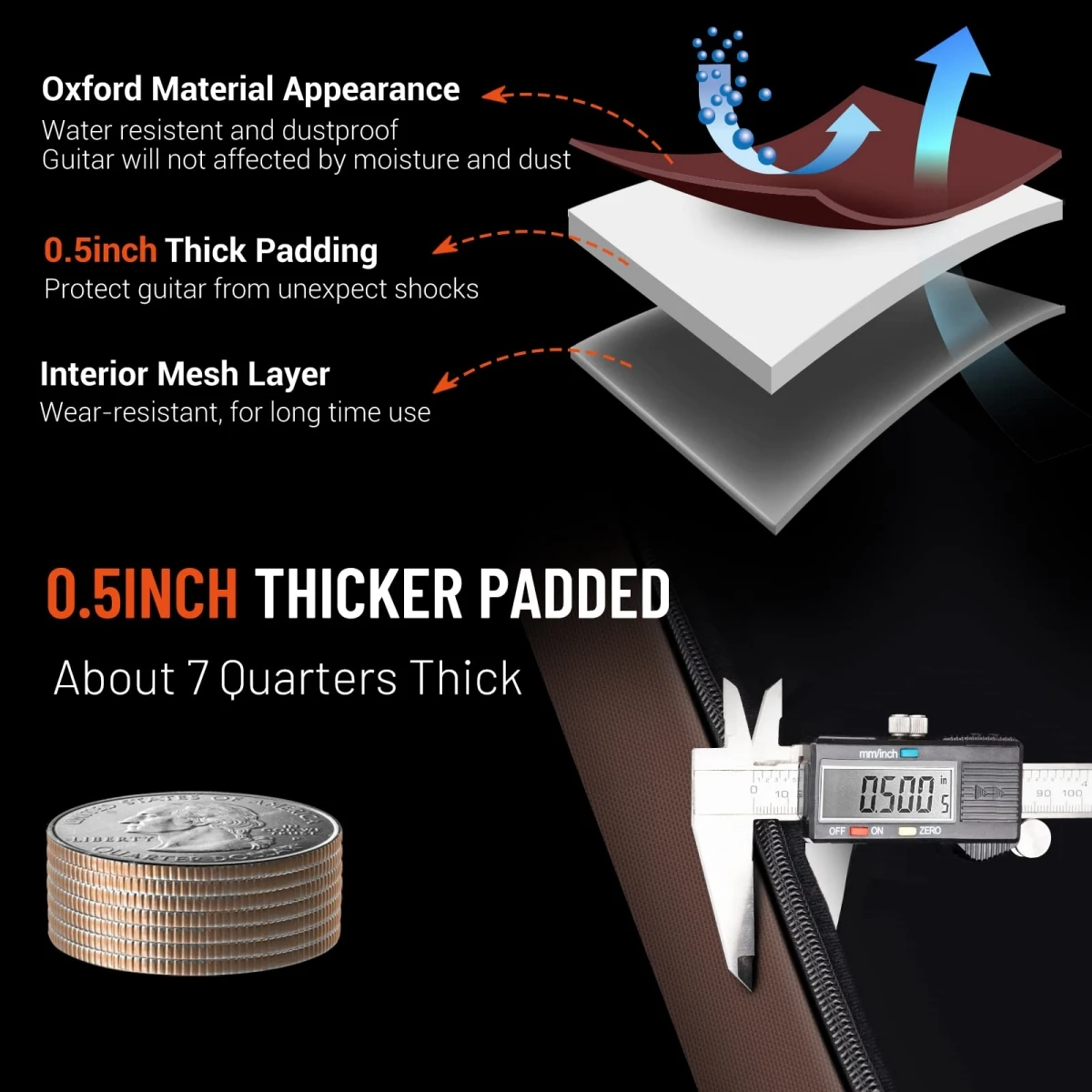 • Waterproof Oxford Nylon :Crafted from waterproof Oxford nylon, this guitar bag ensures your beloved instrument stays dry and safe in any weather condition.