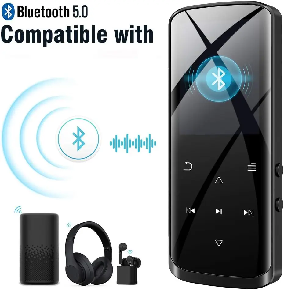 【Bluetooth 5.0 Technology】 Bluetooth 5.0 provides faster transmission speed, more stable performance and high anti-jamming capability, so you can play music through Bluetooth headphone/speaker, keep you away from the cables.【Note】: This MP3 is a Bluetooth transmitter, not a receiver, it cannot pair with phones